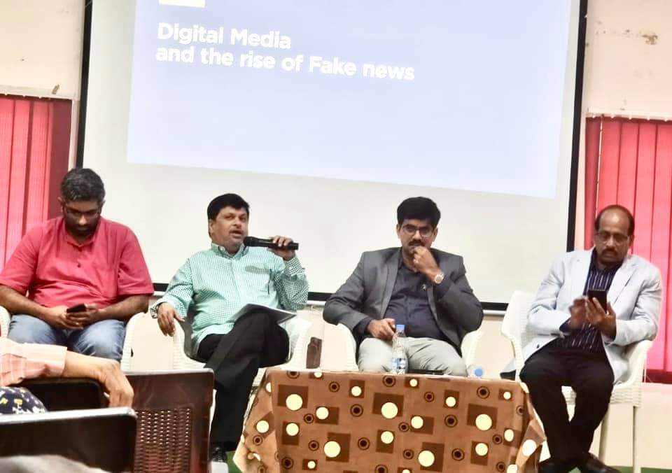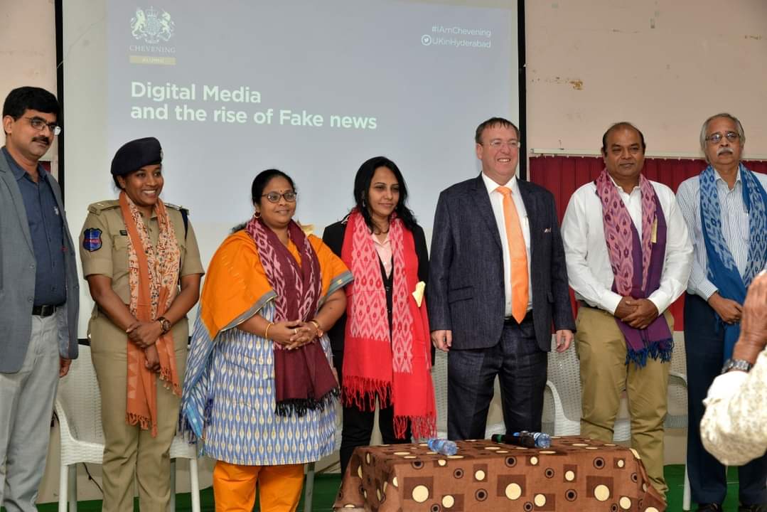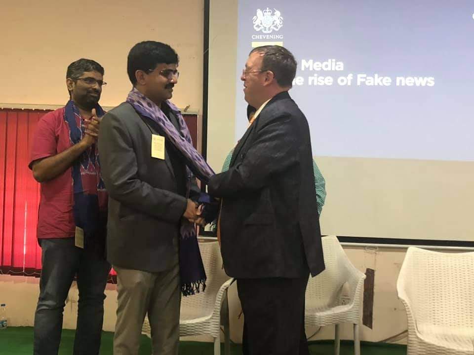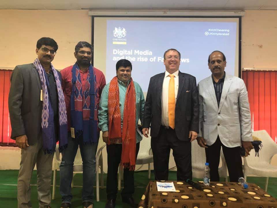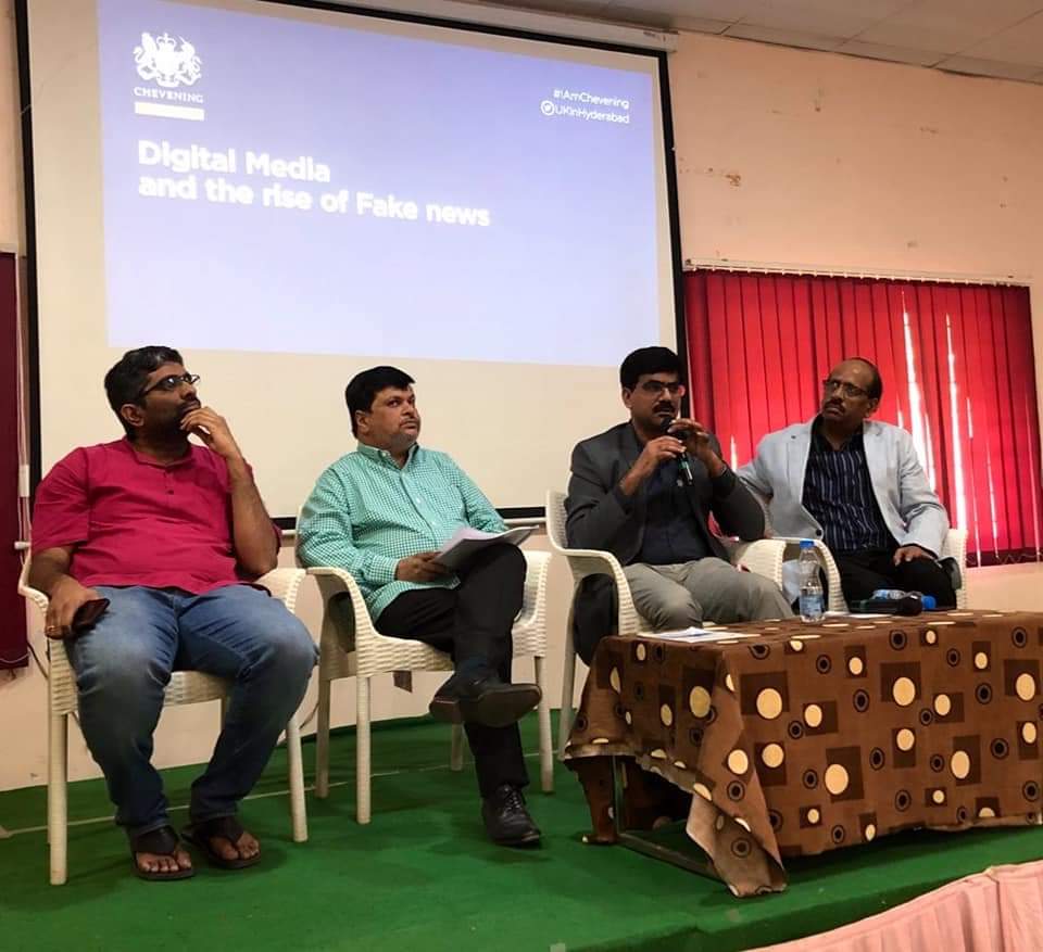 Gallery UK High Commission workshop Sudhakar Reddy speaking at an event on the topic of Digital Media and the Rise of Fake News. It was attended by members of the Chevening fellowship.